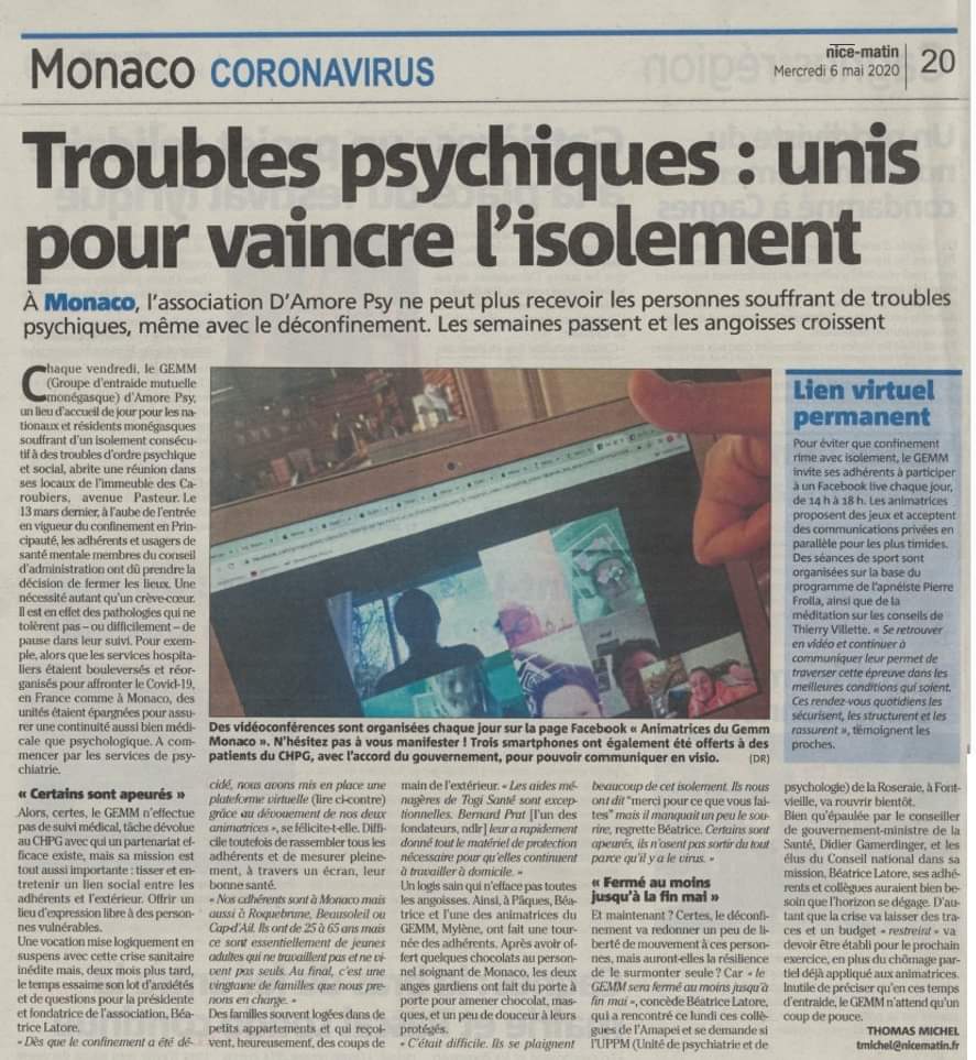 Veuillez trouver ici les actions de l’Association D’AMORE PSY et du GEMM de Monaco