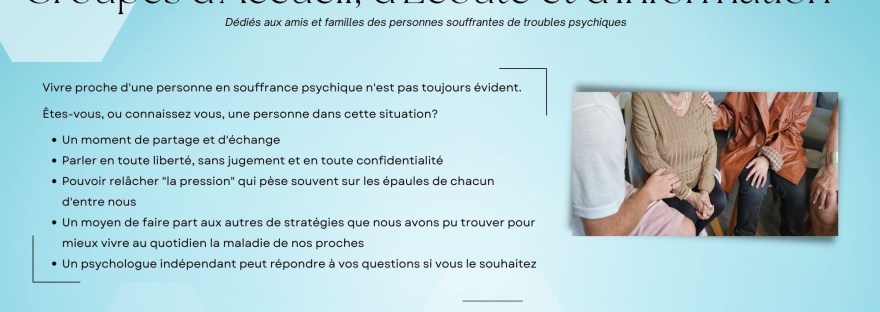 Après la création du GEMM en 2016, (Groupe d’Entraide Mutuelle Monégasque), ce lieu d’accueil de jour non médicalisé, qui reçoit actuellement plus de 30 adhérents souffrants de troubles psychiques, le besoin de soutenir les familles et les aider à sortir de l’isolement est la nouvelle mission de D’AMORE PSY qu’il faut mener à bien. La… Lire la suite Groupes d’Accueil d’Ecoute et d’Information