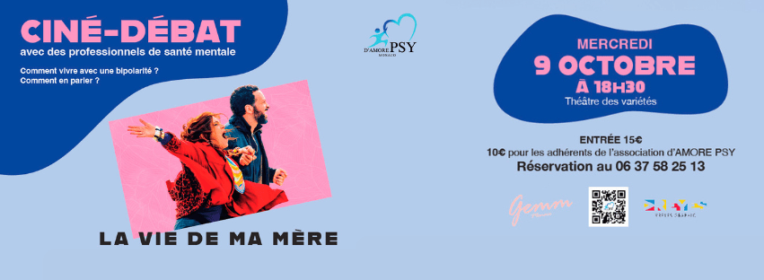 Durant la semaine d'information sur la santé mentale (SISM), le mercredi 09 octobre 2024 à 18h30 au Théâtre des Variétés, l'Associaion D'Amore Psy a organisé une soirée Ciné-débat sur le film : La Vie de Ma Mère (1h43 min) Un film de Julien Carpentier avec Agnès Jaoui et William Lebghil La soirée a commencé avec la projection d'un court-métrage pour présenter l'atelier théâtre… Lire la suite Ciné-débat : le mercredi 09 octobre